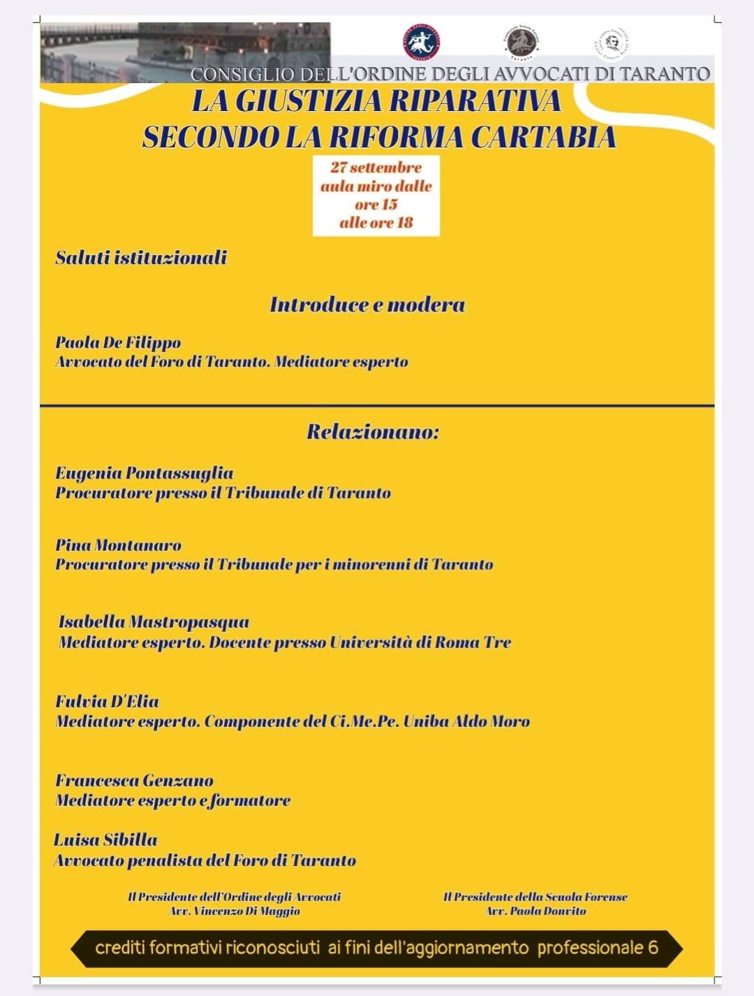 Convegno LA GIUSTIZIA RIPARATIVA SECONDO LA RIFORMA CARTABIA -Taranto